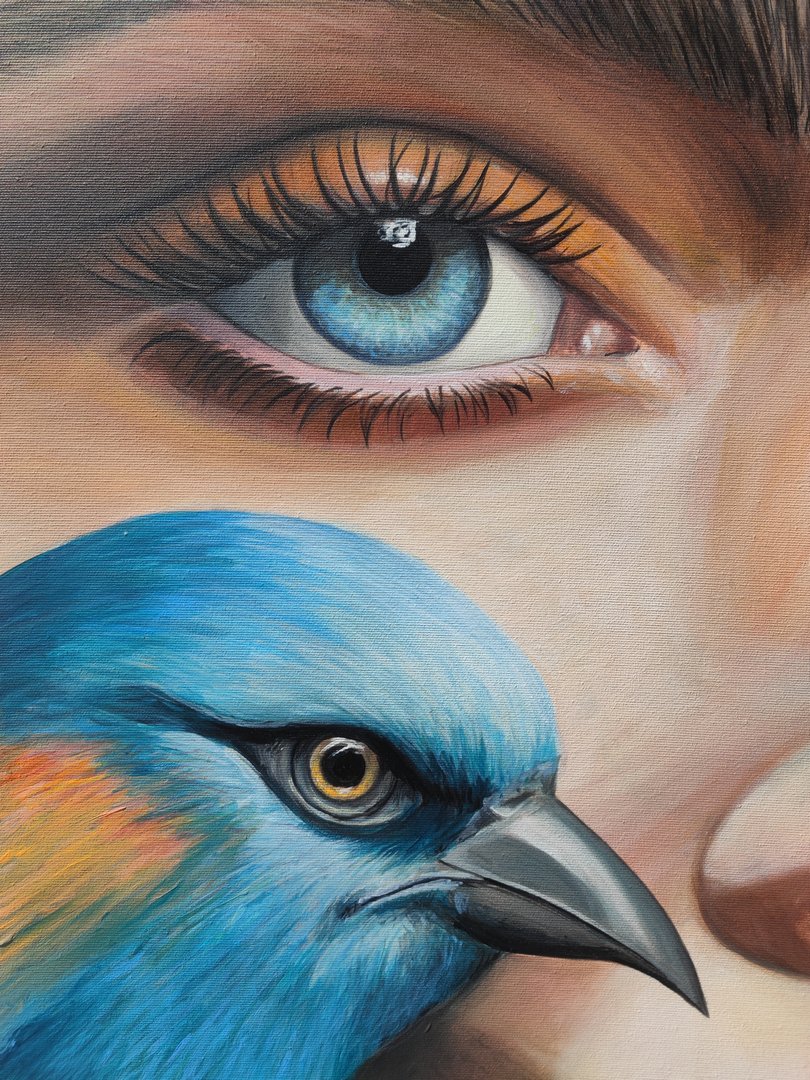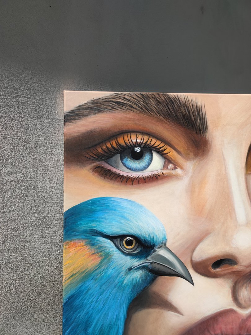 Kobiety, można o nich mówić godzinami. Są dla mnie niewyczerpalnym źródłem inspiracji. Spojrzenia obok których nie można przejść obojętnie. Intrygujące zestawienie dzikiego ptaka z piękną twarzą kobiety robi wrażenie. Będzie się on świetnie prezentować zarówno w nowoczesnym wnętrzu jak i bardziej tradycyjnej czy eklektycznej przestrzeni. Unikatowy obraz dla wyjątkowej osoby.