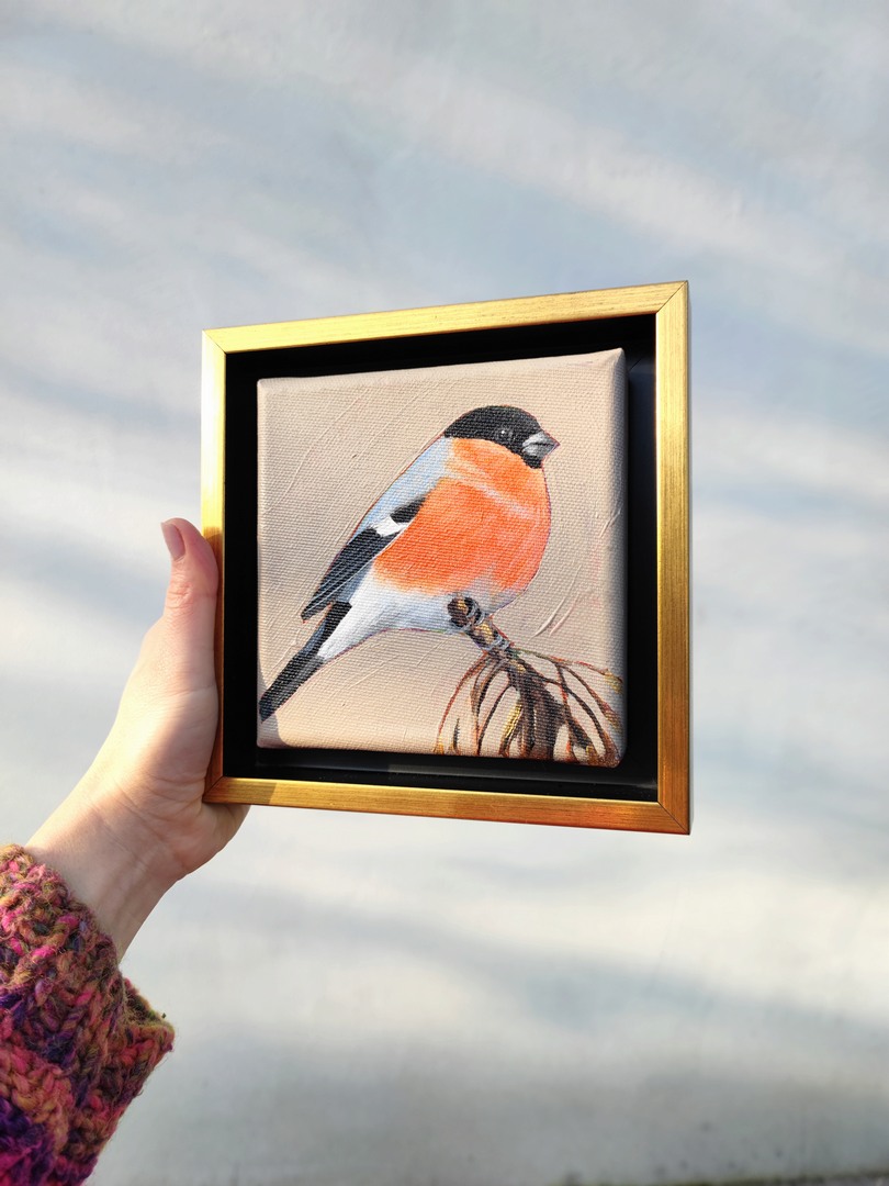 Z pewnością każdy z nas kojarzy uroczego ptaka, który stanowi jeden z symboli polskiej zimy. Obraz oprawiony w piękną, wysokiej jakości czarną ramę ze złoconym frontem i gotowy do zawieszenia. Kolory które przeważają to beż, czerń i oczywiście charakterystyczna czerwień Gila, które pięknie komponują się z ramą.